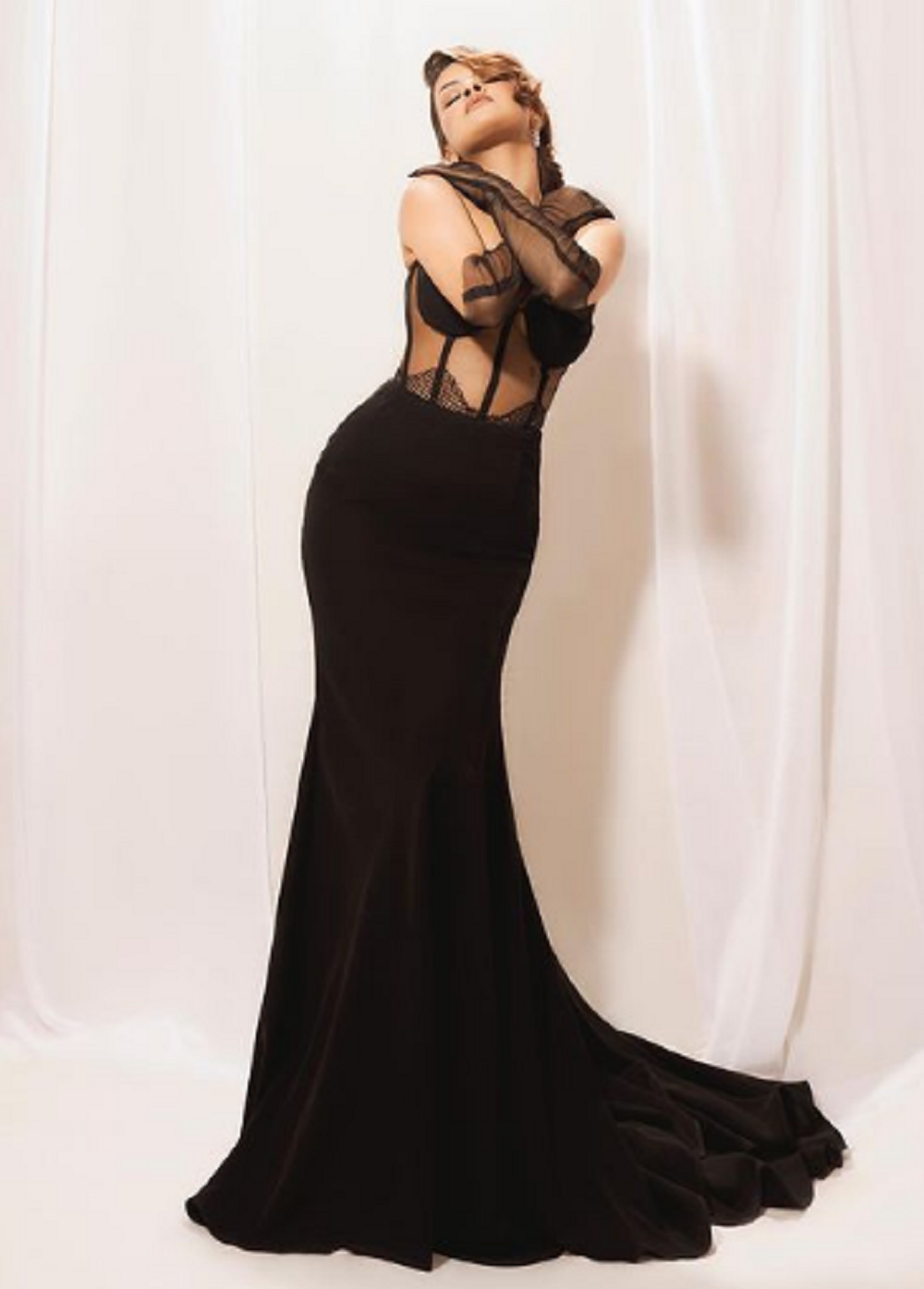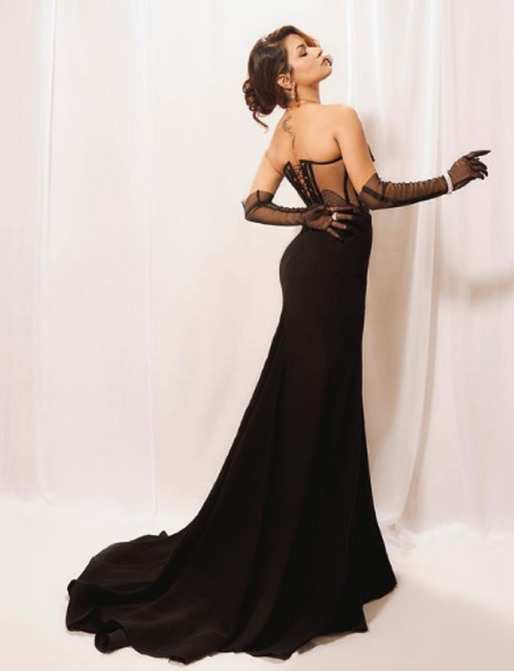 Avneet Kaur showed her glam look in black sheer corset-style gown.