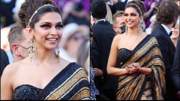 Indian actress Deepika Padukone seen in a beautiful sari at the Cannes Film Festival 2022