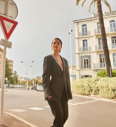 Hina Khan Looks Classic In Black Pantsuit At Cannes 2022.