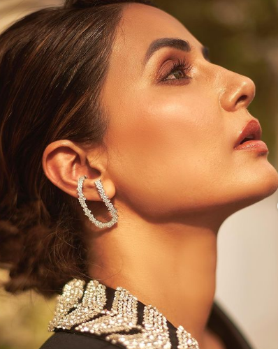 हिना खान इन दिनों कान्स फिल्म फेस्टिवल में अपने स्टनिंग लुक्स से अपने फैंस को प्रभावित कर रही हैं। हिना खान ने कान्स फिल्म समारोह की कुछ तस्वीरें सोशल मीडिया हैंडल पर साझा की। तस्वीरों में, हिना ब्लैक पैंटसूट में बहुत खूबसूरत लग रही हैं। उन्होंने अपने लुक को चमकदार ईयररिंग्स और रिंग से एक्सेसराइज़ किया हैं और अपने बालों को एक स्टाइलिश बन में बांधा हुआ है।