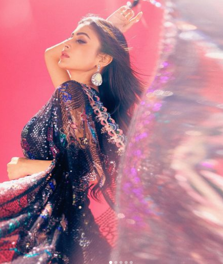 मौनी रॉय ने अपने इंस्टाग्राम हैंडल पर अपनी बोल्ड लुक में कुछ फोटोज शेयर की। फोटोज में मौनी साड़ी पहने अलग-अलग पोज देती दिखाई दे रही है। मौनी साड़ी में बहुत ग्लैमरस लग रही है। फोटोज में मौनी ने खूबसूरत ईयरिंग्स के साथ अपने लुक को पूरा किया है और अपने बालों को भी खुला रखा है।