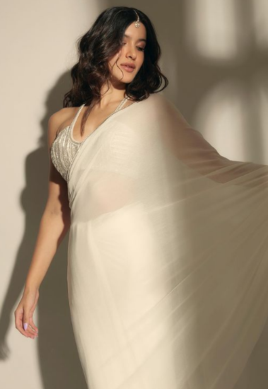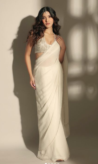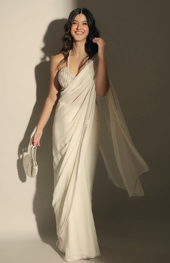 शनाया कपूर ने शेयर की व्हाइट साड़ी में खूबसूरत फोटोज।