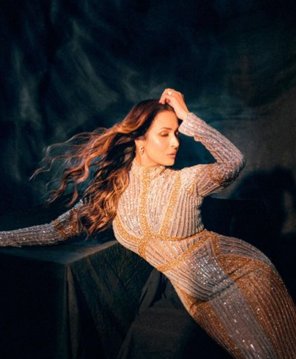 हाल ही में, मलाइका अरोड़ा ने अपने इंस्टाग्राम पर अपनी कुछ ग्लैमरस तस्वीरें शेयर की हैं। तस्वीरों में मलाइका लाइट पिंक कलर का टाइट फिटिंग गाउन पहने नजर आ रही हैं। मलाइका के गाउन सिल्वर और गोल्डन कलर के सितारे से जड़ा हुआ हैं जिनमें मलाइका बला की खूबसूरत लग रही हैं।