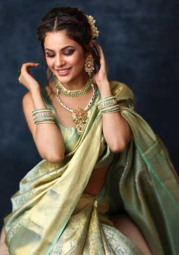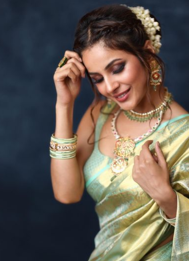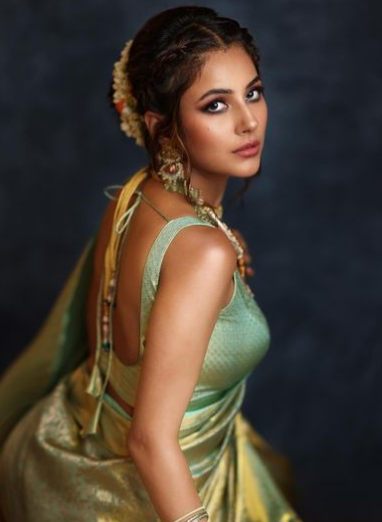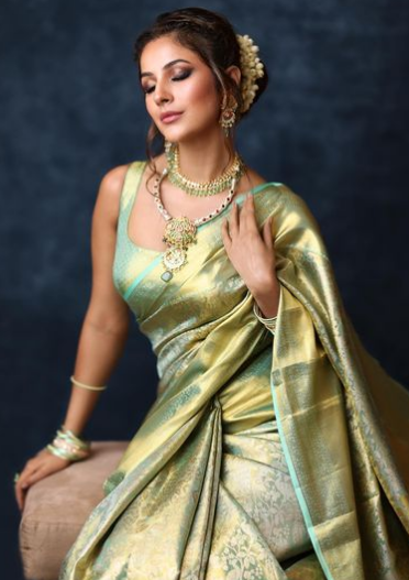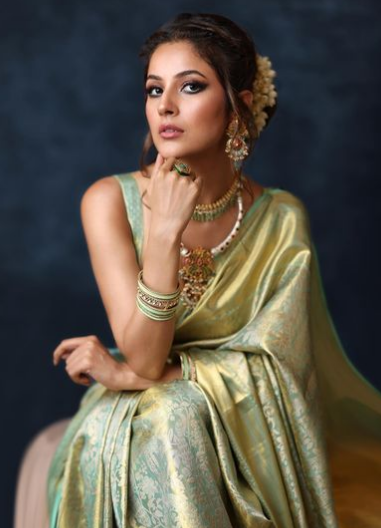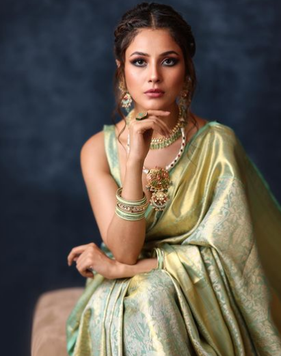 Shehnaaz Gill's new look seen in Kanjeevaram saree.