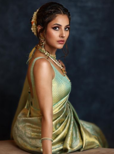 हाल ही में, शहनाज गिल ने अपने इंस्टाग्राम पर फिल्मफेयर अवॉर्ड शो की कुछ तस्वीरें शेयर की है। जिसमे शहनाज गोल्डन और ग्रीन कलर के शेड की कांजीवरम साड़ी में दिखाई दे रही हैं। इस साड़ी के साथ शहनाज ने मैचिंग की ज्वैलरी पहनी हुई है। अपने इस लुक को शहनाज ने मेसी हेयर लो बन के साथ बालों में गजरा लगाकर कंप्लीट किया है। जिसमे वह बेहद खूबसूरत लग रही है।