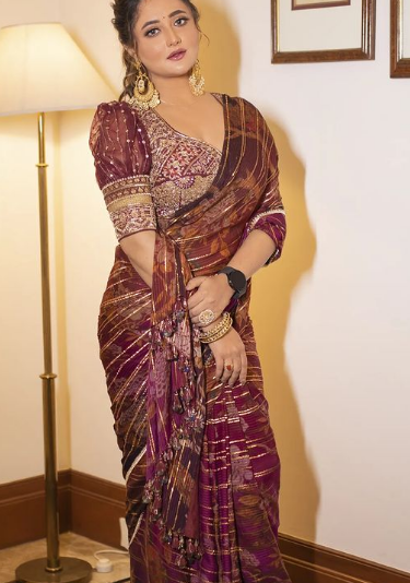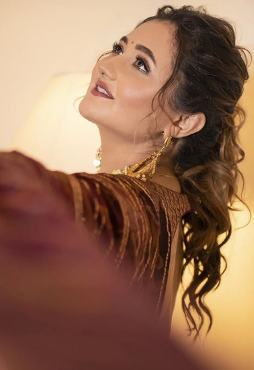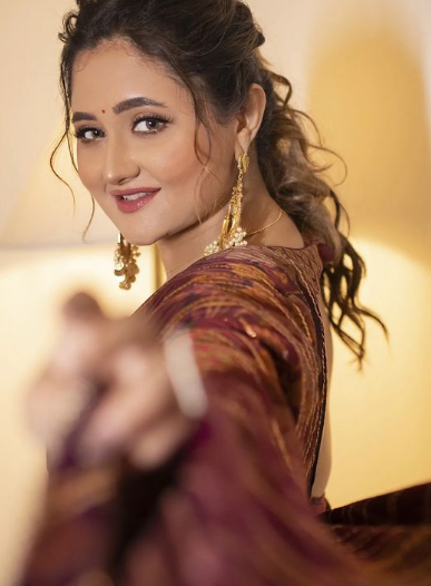 रश्मि देसाई अपने बोल्ड लुक को लेकर हमेशा सोशल मीडिया पर छाई रहती हैं। एक बार फिर से रश्मि ने इंस्टाग्राम पर कुछ फोटोज शेयर की है। जो सोशल मीडिया पर काफी तेजी से वायरल हो रहा है। फोटोज में रश्मि मरून कलर की साड़ी में दिखाई दे रही है। रश्मि ने अपने इस लुक को हैवी गोल्ड इयर पीस, लाउड मेकअप के साथ पूरा किया है।
