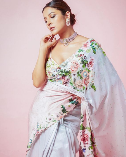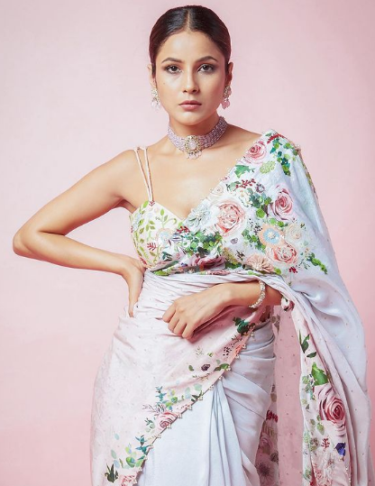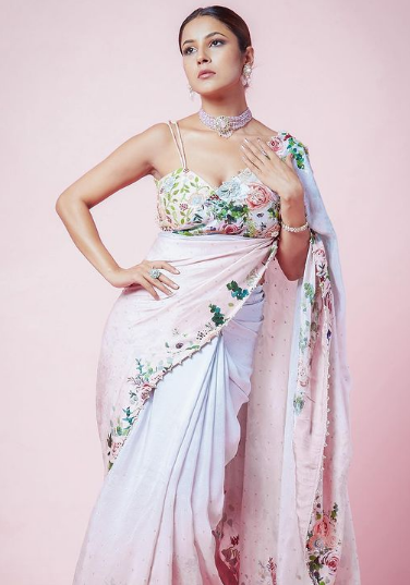 हाल ही में, शहनाज गिल ने अपने इंस्टाग्राम पर कुछ लेटेस्ट तस्वीरें शेयर की हैं। जिसमें वह पिंक कलर की फ्लोरल साड़ी पहने नजर आ रही हैं। इसके साथ ही शहनाज ने साड़ी के मैचिंग का गले में नेकपीस और कानों में इयरिंग्स पहने हुए हैं।