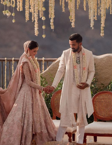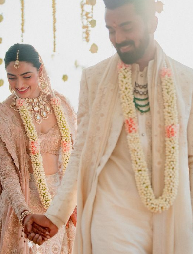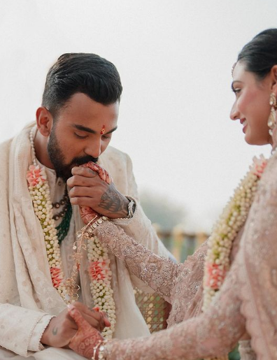 हाल ही में अथिया शेट्टी ने अपने आधिकारिक इंस्टाग्राम हैंडल पर शादी की कुछ तस्वीरें शेयर की हैं। तस्वीरों में अथिया और केएल राहुल एक-दूजे में खोए नजर आ रहे हैं। दोनों की तस्वीरें बेहद ही खूबसूरत लग रहे हैं। लाइट पिंक कलर के लहंगे और कुंदन ज्वैलरी अथिया बहुत खूबसूरत लग रही है। वहीं, शेरवानी पहने केएल राहुल काफी जंच रहे हैं। दोनों की तस्वीरें फैंस को खूब पसंद आ रही हैं।