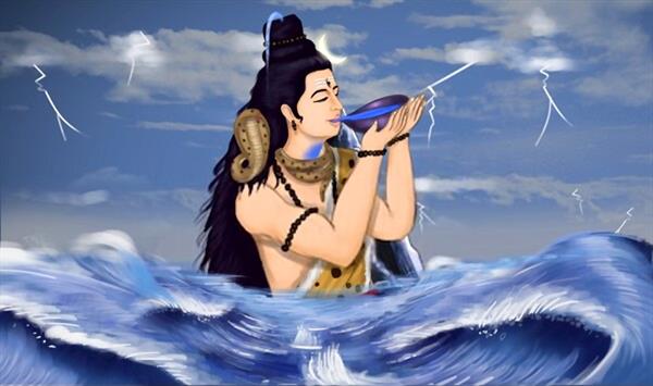 एक बार की बात है, देवता और राक्षस समुद्र से अमृत निकालने के लिए समुद्र मंथन कर रहे थे, लेकिन अमृत के साथ-साथ समुद्र से विष यानी जहर भी निकला। यह जहर इतना खतरनाक था कि उसकी एक बूंद पूरी दुनिया को खत्म कर सकती थी। अब देवता और राक्षस दोनों ही डर गए कि अब क्या किया जाए। फिर वो भगवान शिव के पास गए। उन्होंने भगवान शिव को सारी बात बताई।
