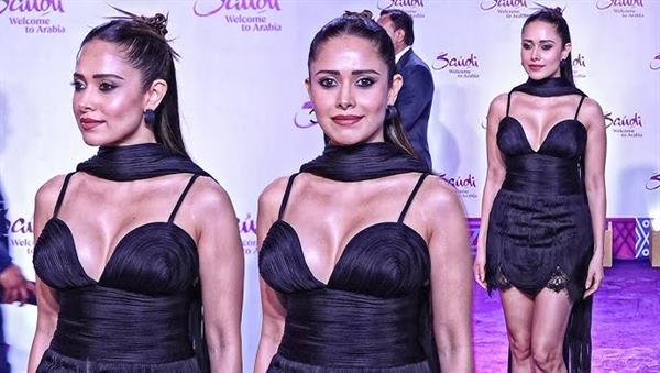 Nushrratt Bharuccha dazzles at a recent event in a striking black dress with a dupatta, channeling the iconic "Shava Shava" vibes.