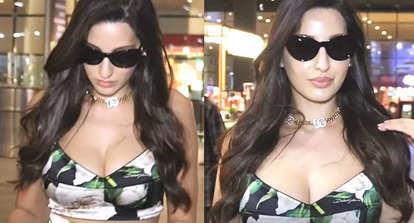 दुपट्टे के साथ नुसरत भरुचा की काली आधुनिक मिनी ड्रेस हमें K3G के 'शावा शावा' गाने की याद दिलाती है।