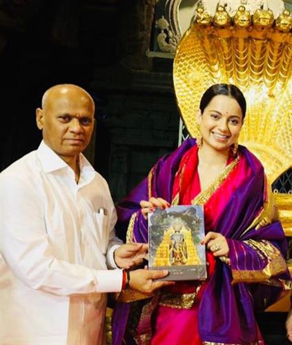 काशी विश्वनाथ मंदिर पहुंचीं कंगना रनौत।