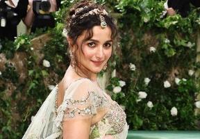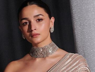 Alia Bhatt looks stunning in a dazzling brown dress.