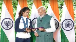 मनु भाकर ने प्रधानमंत्री मोदी को वह पिस्तौल दिखाई जिससे उन्हें दो ओलंपिक पदक मिले।