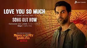 'मोनिका ओ माई डार्लिंग' का नया गाना ‘लव यू सो मच (आई वांट टू किल यू)’ रिलीज़ हो गया है और अब ये गाना इंटरनेट पर छाया हुआ है, जिसे 3 दिनों में 18 लाख से ज्यादा बार यूट्यूब पर देखा जा चुका है। इस गाने को राजकुमार राव, हुमा कुरैशी और राधिका आप्टे पर फिल्माया गया है और सरिता वाज द्वारा गाया गया है।