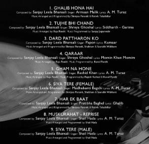 इस एल्बम में ‘गालिब होना है’, ‘तुझे भी चांद', ‘करार’, ‘दर्द पत्थरों को’, ‘गम न होने’, ‘हर एक बात’, ‘मुस्कुराहट’ और ‘सिवा तेरे’ गाने शामिल हैं।